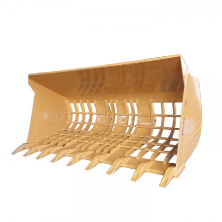 產品特點:裝載容量大,大型裝載機篩分物料,斗型寬,底部平整;此設計的斗型擁有最大裝載量和最小溢出量的特點;一般配斗齒,斗齒或者設有螺絲孔的刀板可以交替使用,還有側卸斗、高卸斗、巖石斗、輕料斗。