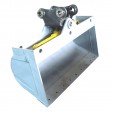 產品特點:具平面斗的特點,并可以通過油缸作用轉動挖斗;刀板可更換,能完成普通挖斗無法完成的作業;雙油缸,不含油管、接頭等小配件。 適用工況:斜坡等平面修整、河道、水溝等清淤工作。